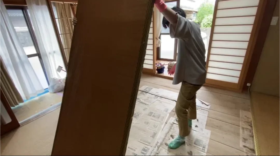 床材を剥ぐ作業