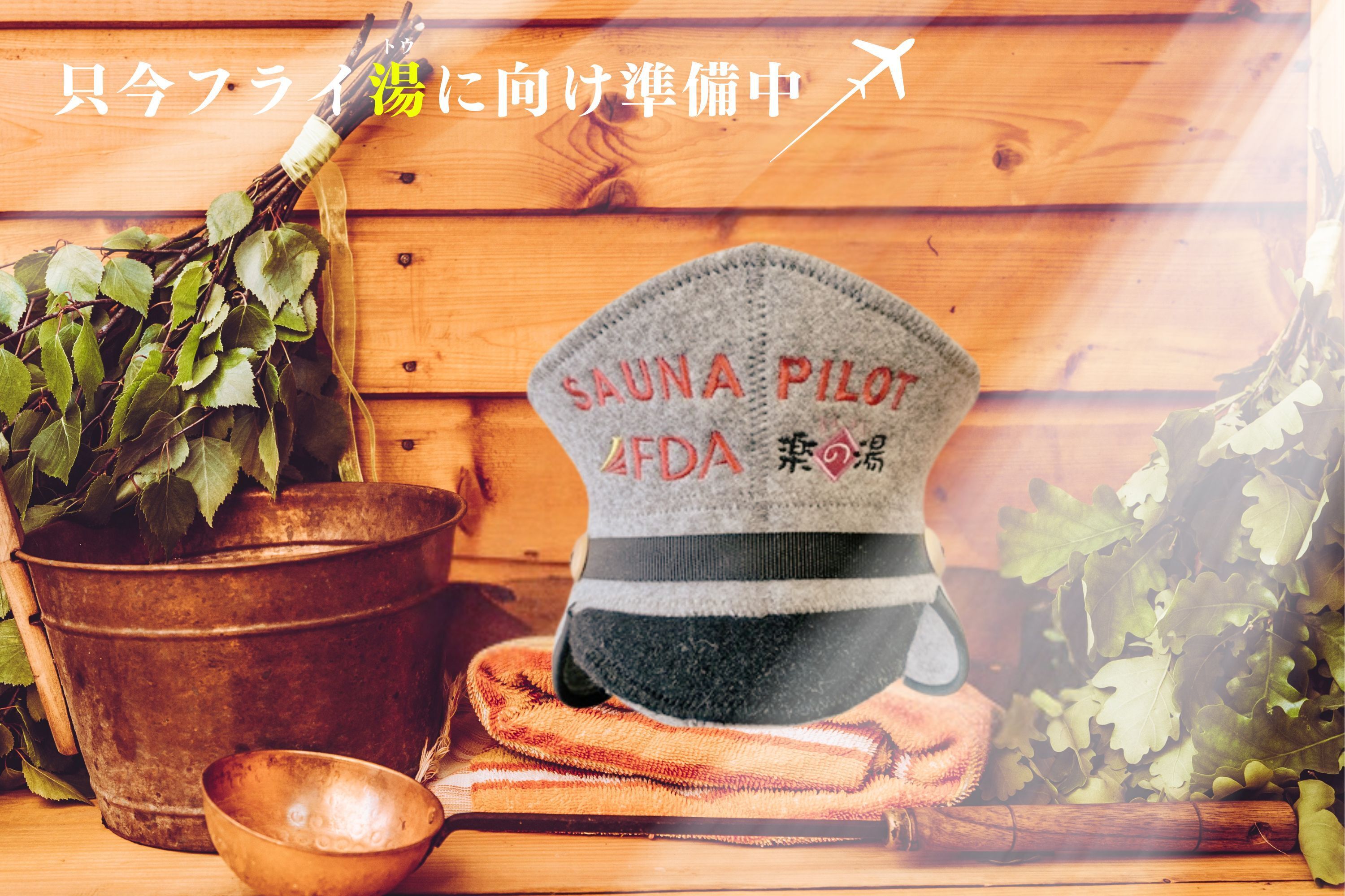 正面には「SAUNA PILOT」、サイドにはFDAロゴと楽の湯の刺繍が施され、操縦席でととのう”感覚を味わえるユニークなアイテムとなっています。