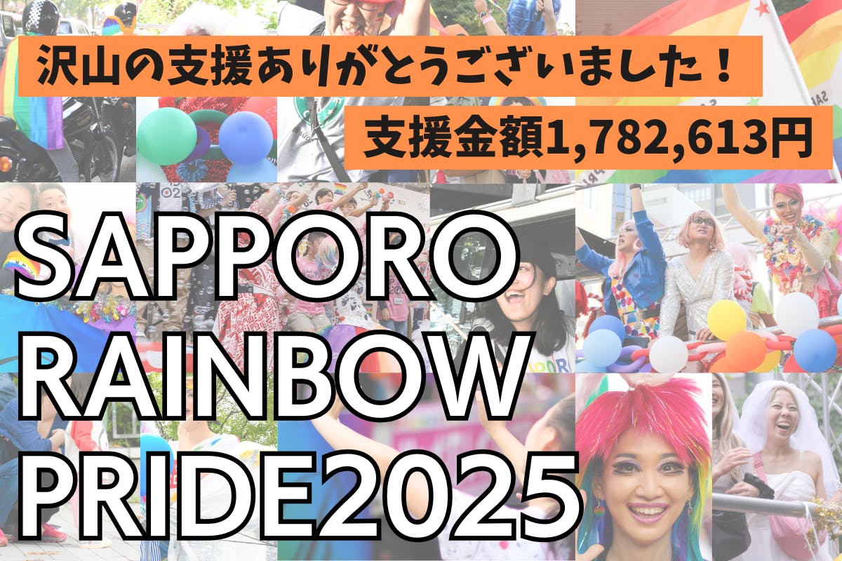 2025/05/02 09:00クラファン終了!まずはご支援そして応援してくださったみなさま、本当にありがとうございました。みなさまのおかげで1,782,613円ものご支援をいただきました!今回クラファンの目標達成には至りませんでしたが、この一か月間、リターン品を提供してくれた団体、広報に協力してくださった方、そして支援してくださったみなさまの想いを確かに、受け取ることができました。今年、札幌で行うパレードは25回目の節目となります。みなさまにいただいた支援を活用させて頂き、いつも以上に楽しんでいただけるパレードにしていきたいと思っています。開催当日まで実行委員一同、一生懸命準備を進めていきます!改めて気持ちを引き締め、今年9月13日・14日のさっぽろレインボープライドの成功に向けて頑張ります。ご支援いただいた方で郵送物がある方へは、これから心を込めて一つ一つ発送する作業を行います。到着まで今しばらくお待ちください。引き続き私たちの活動を見守っていただけますと幸いです!これからもよろしくお願いします!この度は本当にありがとうございました!!(実行委員一同) もっと見る
