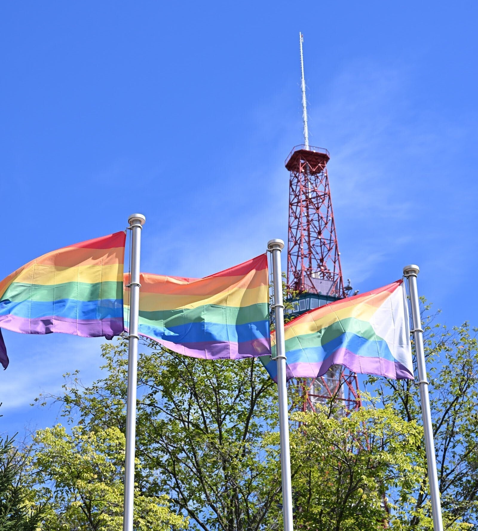 その想いが札幌市に伝わり、2024年のイベント当日、札幌市役所にレインボーフラッグ3枚を掲げていただきました。市役所にレインボーフラッグが掲げられたのは、札幌でのパレードにおいて初めてのことでした。