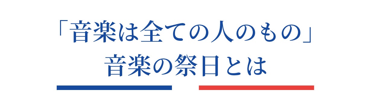 「音楽は全ての人のもの」という精神のもと、毎年夏至の日、世界各国・数多くの都市で同時開催される「音楽の祭日」(Fête de la Musique)は、1982年、文化の振興と国際交流の貢献を目的にフランス文化大臣ジャック・ラングの発案で始まりました。