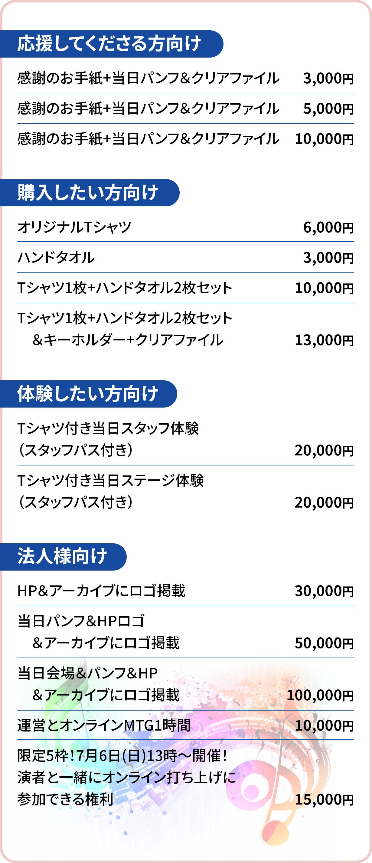 この目標の成功のために、皆さんのご支援が必要です。一緒に音楽の力を切り開くために、どうかご協力お願いいたします。