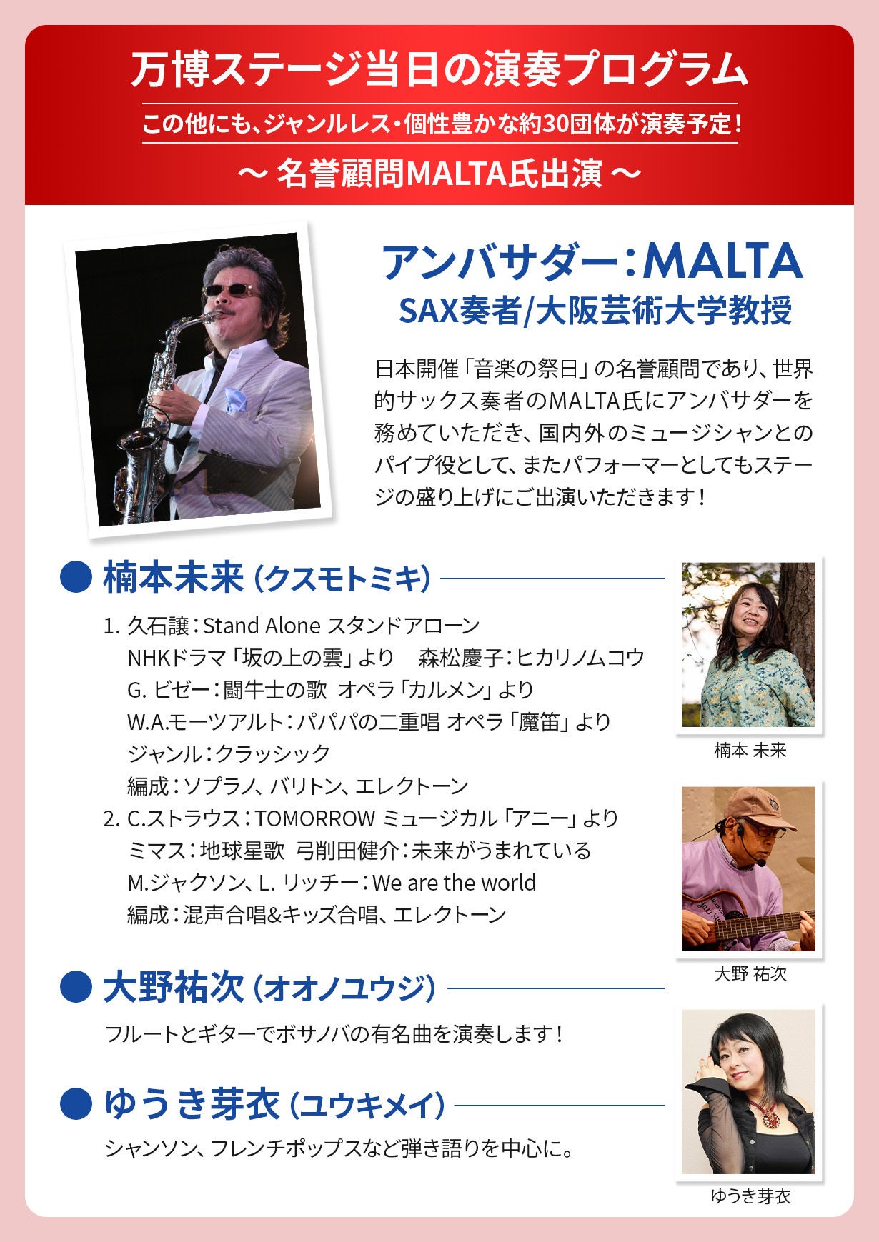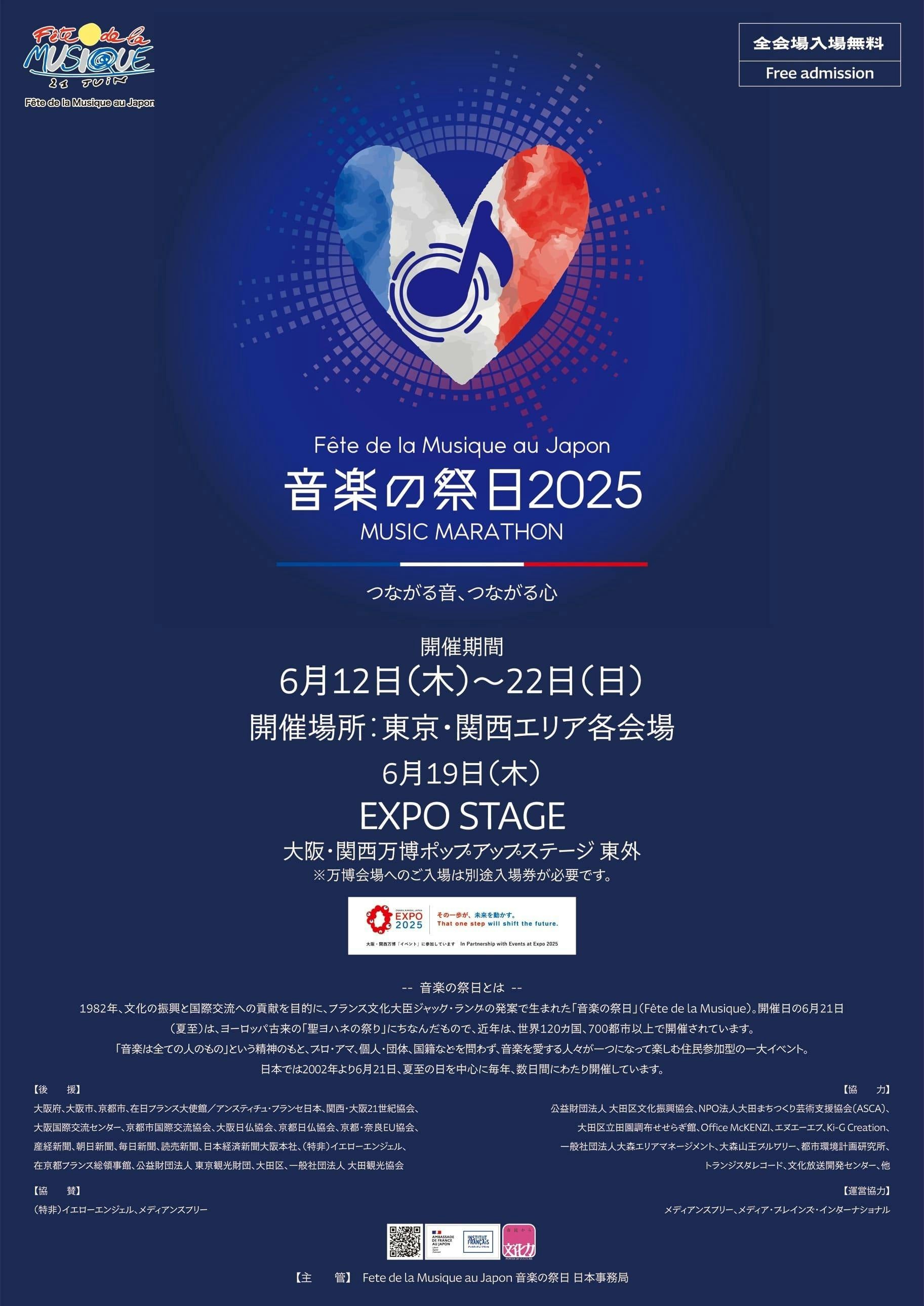 そんな思いから、今年2025年の「音楽の祭日」は、世界的な音楽イベントにふさわしい「大阪・関西万博」会場の玄関口に位置するポップアップステージ 東外での開催も決定しました!