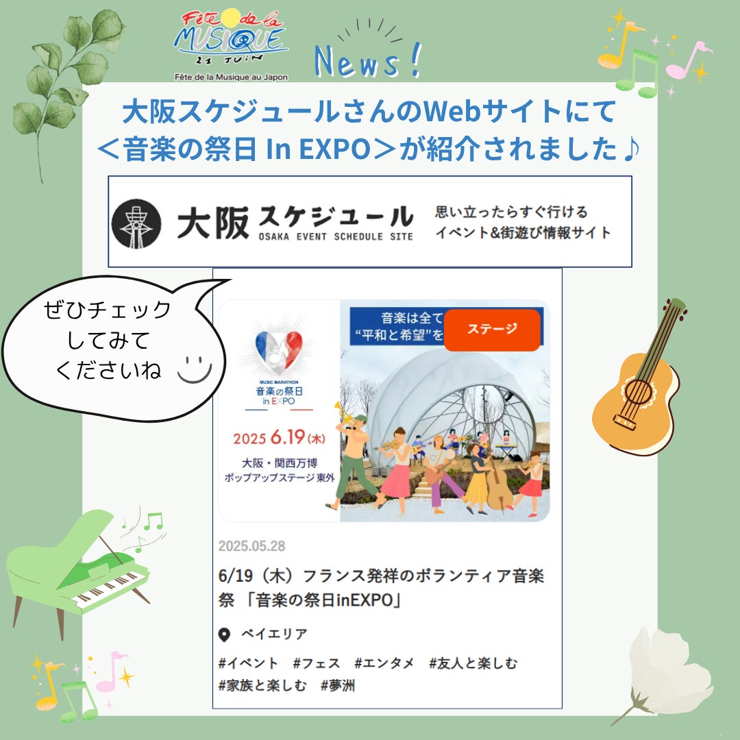 大阪のイベント&街遊び情報サイト「大阪スケジュール」さんのステージ欄にて、<音楽の祭日 in EXPO>の紹介記事が公開されました♪