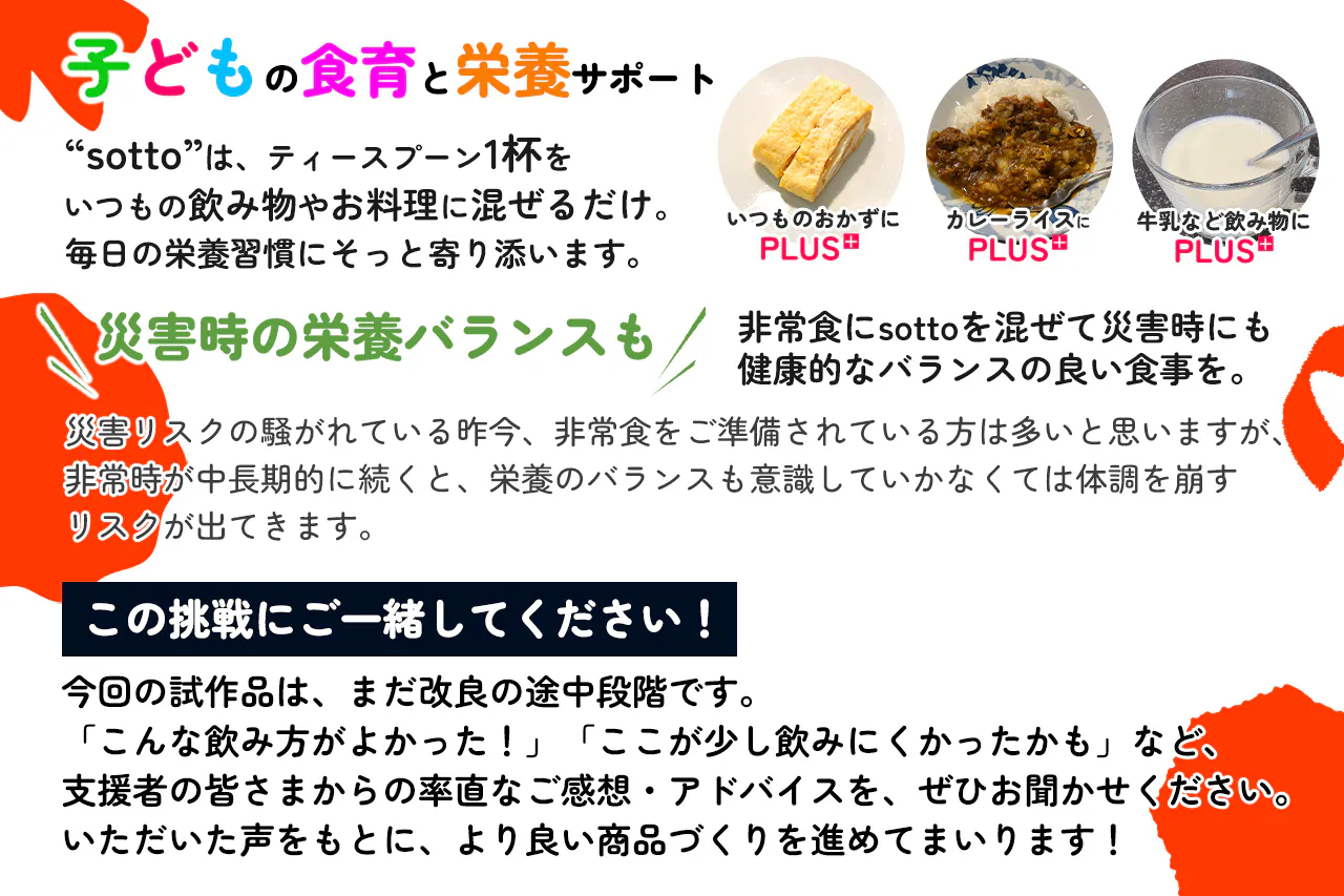 このサプリを通じて、偏食に悩む子どもたちとその家族に、安心と笑顔を届けたい——。