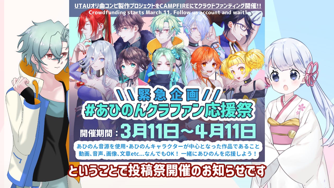第2回クラファン開催中の動画投稿予定としましては、リターン限定UTAU音源のデモ動画を2本ほどご用意しようと考えております。