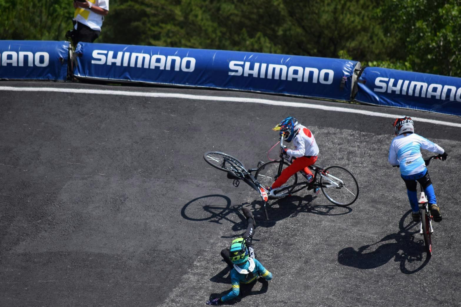 前を走る選手が転倒し、巻き込まれてしまった。昨年のアメリカ大会にて。