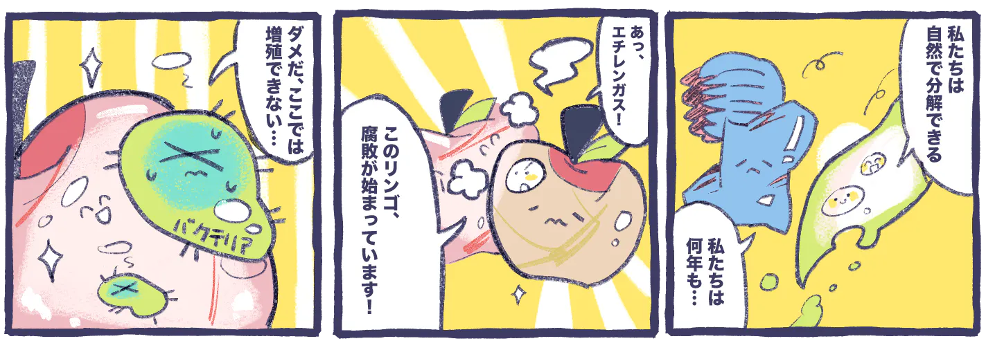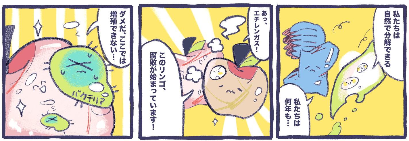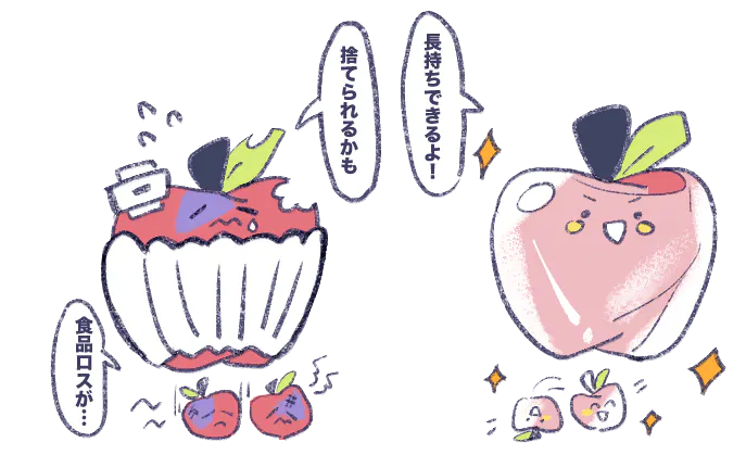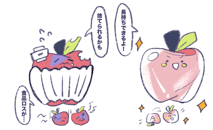 従来の食品梱包材は自然に還らないプラスチックが市場の大部分を占めていました。我々は持続可能な青果物梱包材の開発を通じて、食品ロスの削減と環境負荷の低減を目指しています。