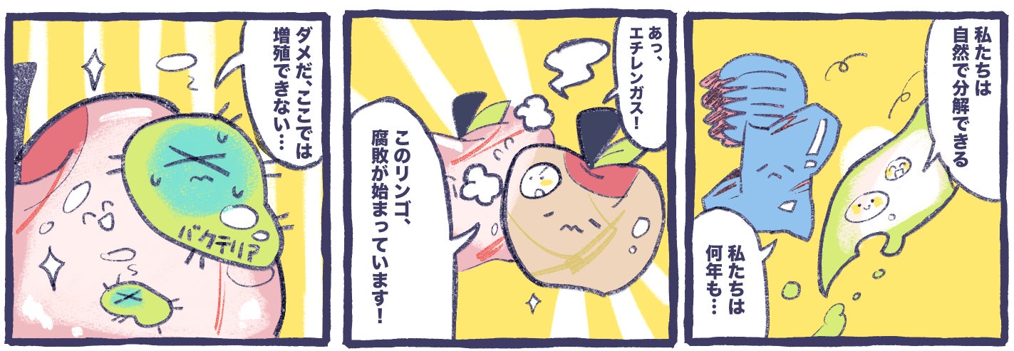 【1】BC 梱包材:自然に還る、強くてやさしい包装BC は、微生物がつくる高純度のセルロースです。本製品ではこの BC を薄いフィルム状にし、青果物をしっかりと包みつつ、水分を保ち、傷みを防ぎます。使用後は自然分解され、土に還る環境配慮型素材です。BC 梱包材:自然に還る、強くてやさしい包装BC は、微生物がつくる高純度のセルロースです。本製品ではこの BC を薄いフィルム状にし、青果物をしっかりと包みつつ、水分を保ち、傷みを防ぎます。使用後は自然分解され、土に還る環境配慮型素材です。