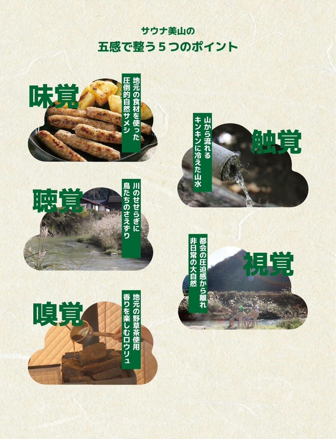 □ サウナで五感を研ぎ澄ませて、全身で、めいっぱい美山を体験していただける。
