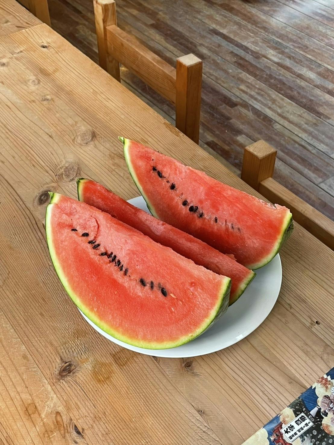 地域の方から立派なスイカをお祝いにいただきました。せっかくなので、そのスイカをサウナ後のお客様にもふるまわせていただいたところ、皆さんとても嬉しそうに召し上がってくださいました。