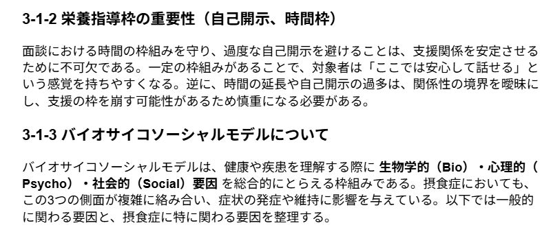 【摂食障害専門管理栄養士の養成+オンライン栄養指導の実施】に向けたプロジェクト、徐々に立ち上がり、進んできています。最近は栄養指導マニュアルの作成も中盤に差し掛かり、AI患者の開発に向けた準備も始めているところです。