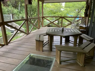 ・小川流れる屋根付き広々テラスでBBQパーティ