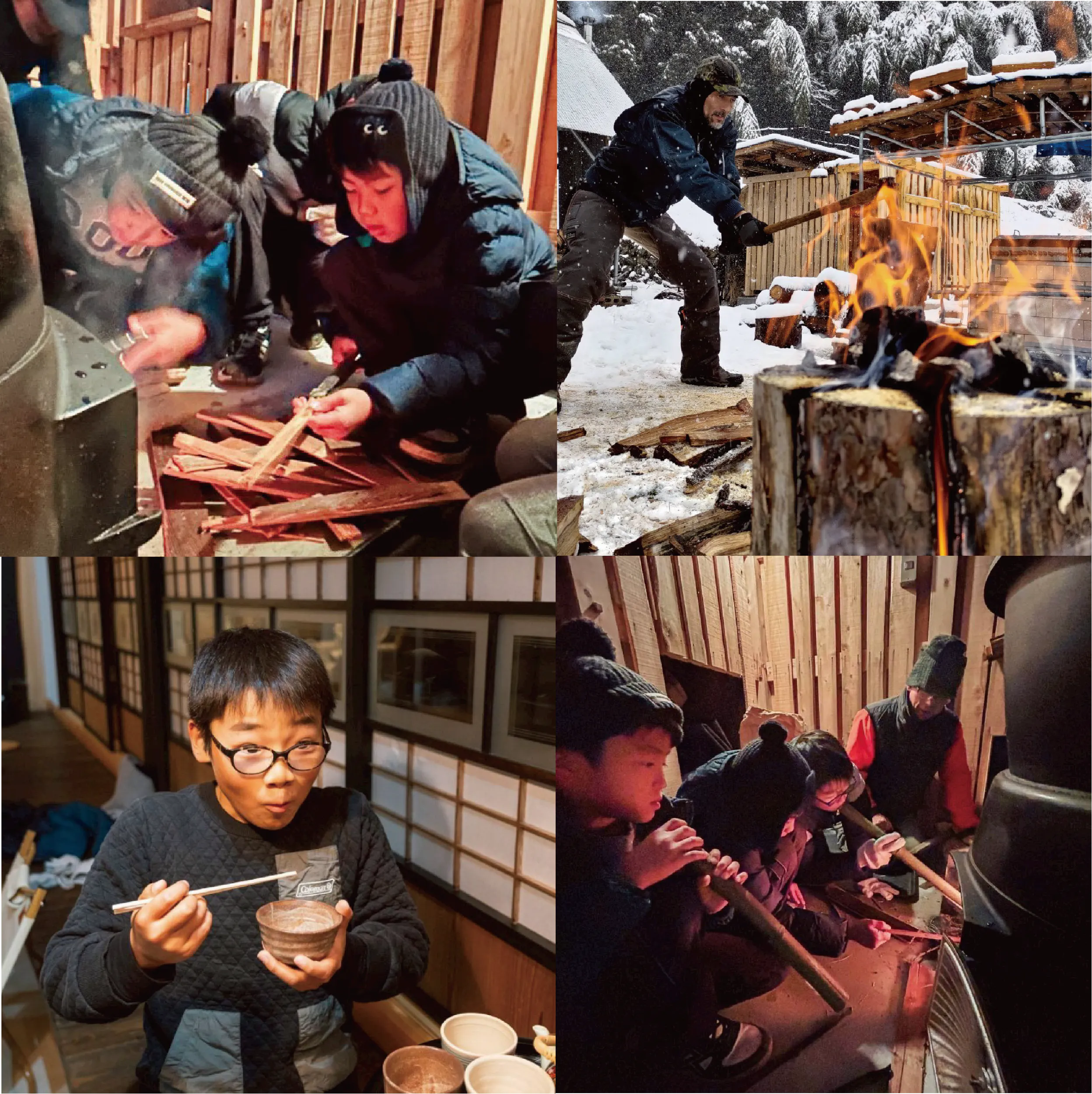・チェーンソーによる丸太伐りや伐倒、薪割り、炭焼き
