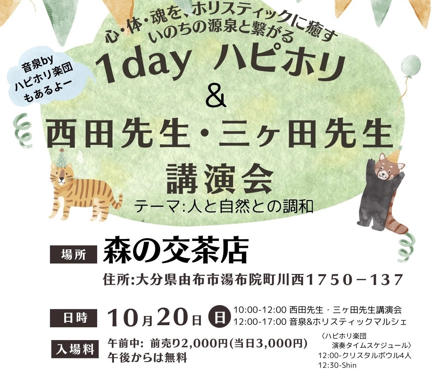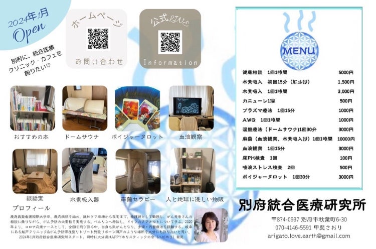 別府をクアオルト(=Kurortとはドイツ語で、クア=Kur「治療・療養、保養のための滞在」とオルと=Ort「場所・地域」という言葉が合わさった言葉で、「療養地」という意味になります。) にしたい、統合医療のクリニックを作りたい、と思い、2024年1月から、別府統合医療研究所と、大分県Happyホリスティックの会(ハピホリ)を立ち上げ、毎月イベントや、zoom勉強会を開催してきました。統合医療のクリニックは、大分市内に見つかったため、ハピホリは、今は、セラピスト同士が繋がり、情報交換する場になっています。