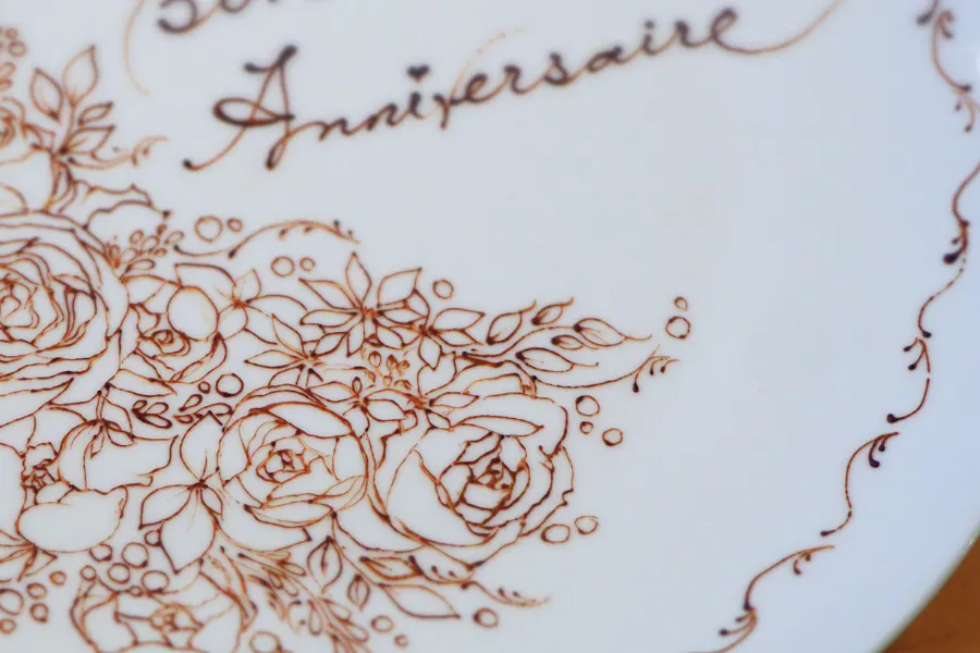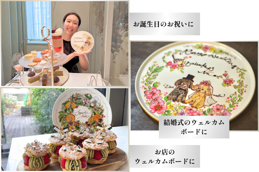 「大切な方の誕生日プレゼントにしたい!」などご要望をいただき、お皿にコーティングを施して長く楽しめるアート作品としてのチョコペンアートも開発しました。