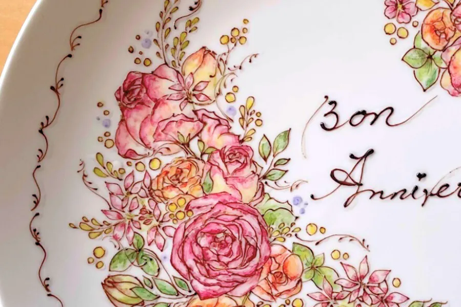 日本には、デザートプレートにメッセージや絵を描くことで、お客様にサプライズを贈る文化があります。
