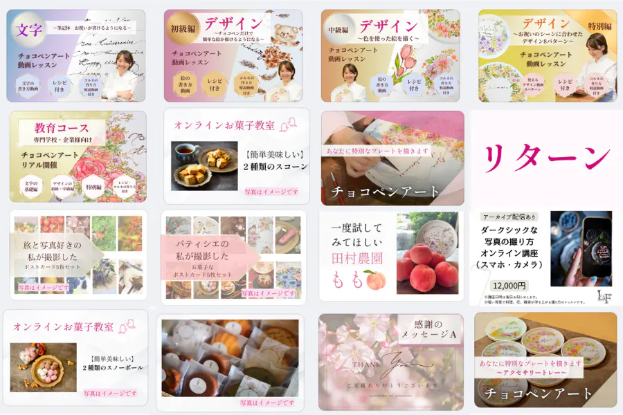 (花や風景の写真・お菓子やチョコペンアート作品)