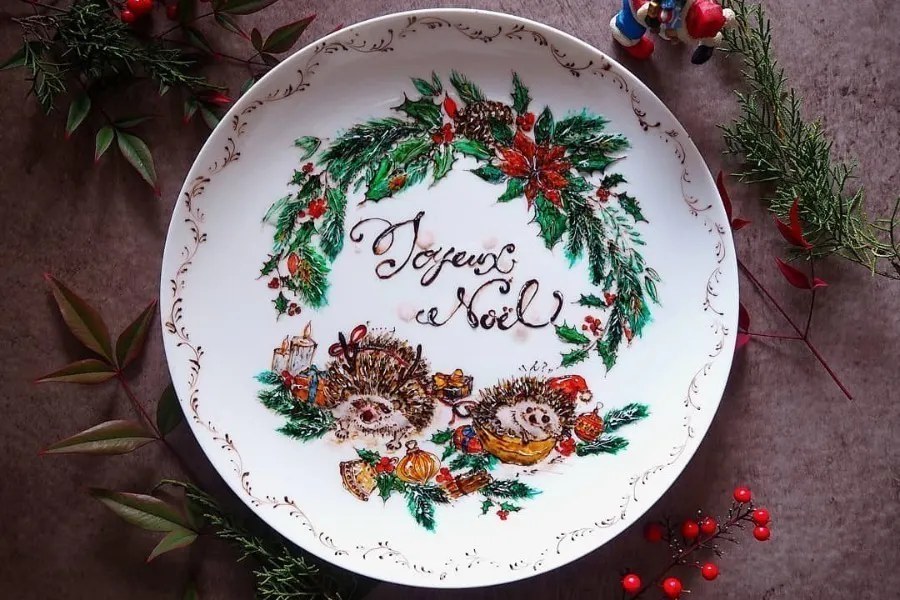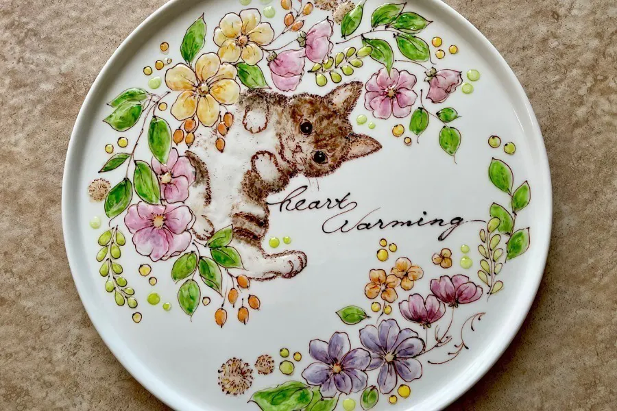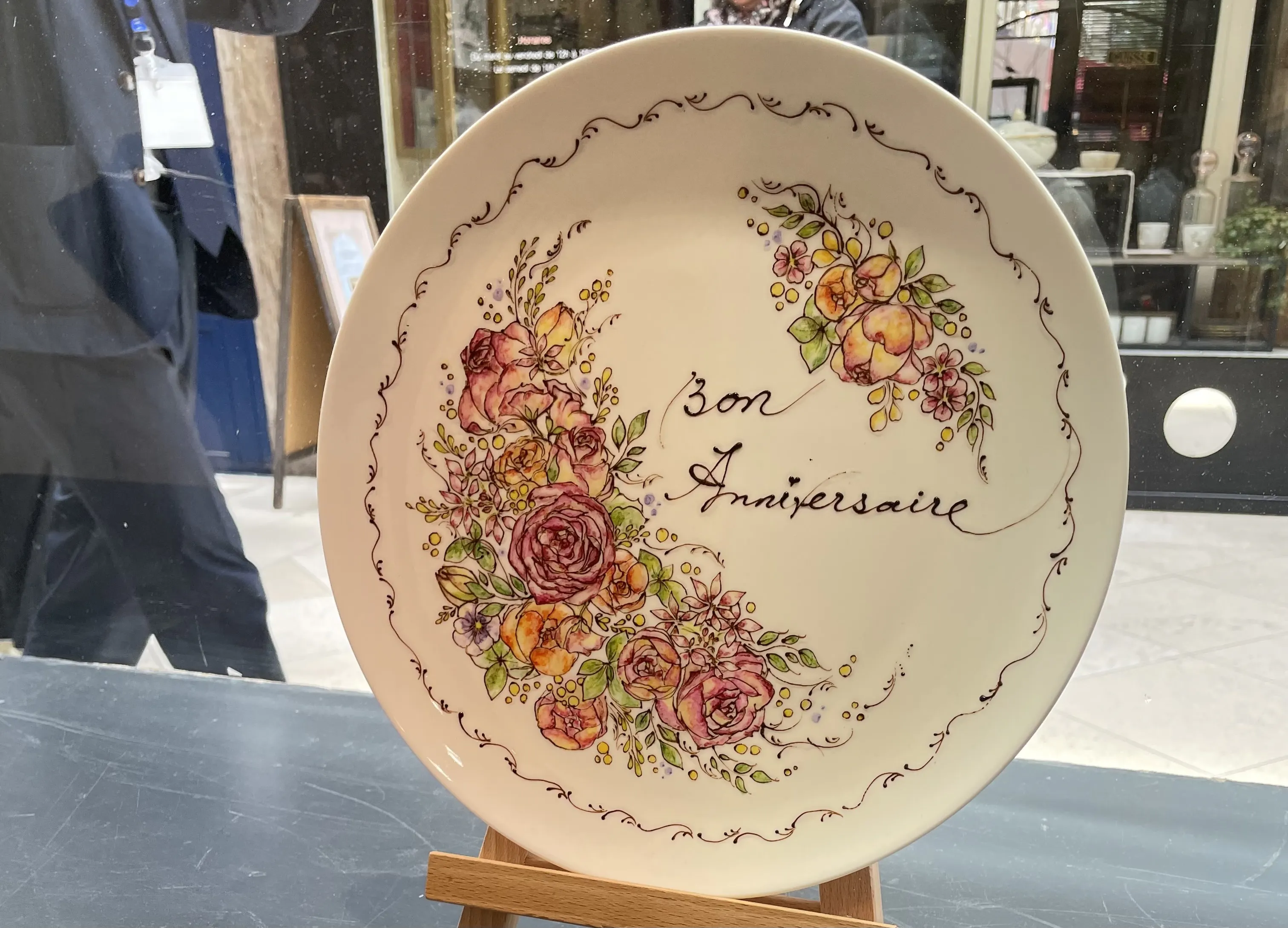 お皿の上に、一本一本、心を込めてバラを描きました。