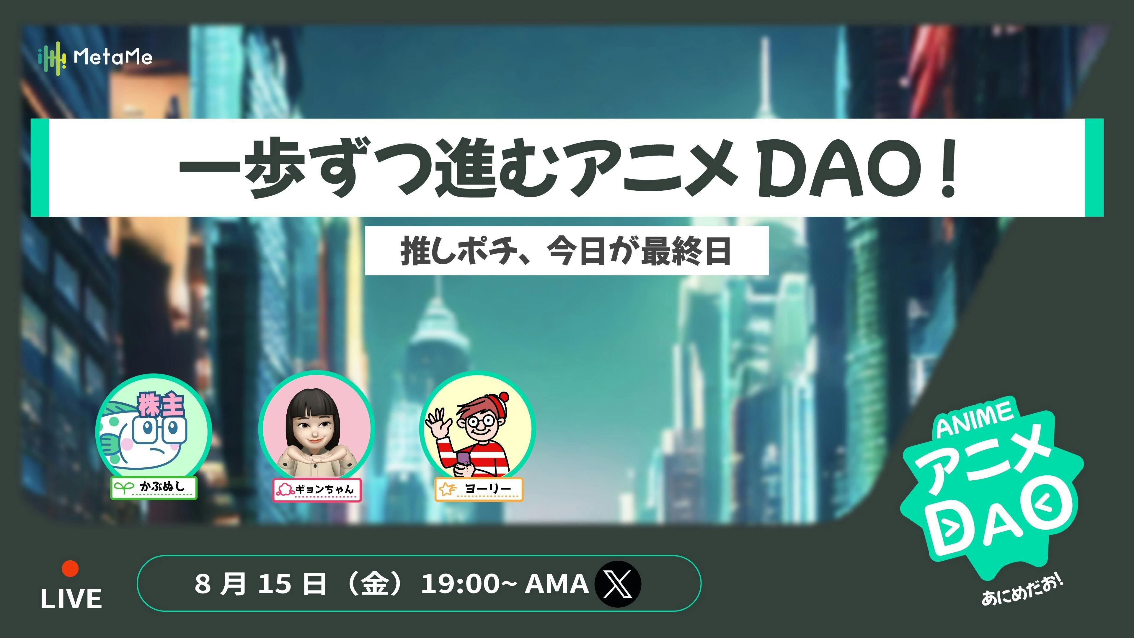 しばらく更新が滞っており申し訳ありません、「かぶぬし」でございます。(アニメDAOのAMAは毎週金曜日19時から欠かさず実施しておりますので、こちらもぜひご覧ください♪)お待たせしました!女子美大の学生さんを対象に実施していた「DAOくん二次創作コンペ」の結果が出ましたので、ご共有させて頂きます!今回、課題制作期間中という忙しい時期にもかかわらず、生徒さんたちが応募をしてくださいました!(課題制作期間中じゃなかったら応募できた、というお声も沢山いただきましたm(_ _)m)では、発表していきます!栄えある最優秀賞はこちら!宇宙。。。そう、まるで宇宙に浮かぶ、DAOくん惑星。よく見ると、DAOくんは地球のようにも見えます。決して暗黒ではなく、均一でもない宇宙空間にひとり輝くDAOくんは、現在の黎明期のアニメDAOを表現しているようです。また、背景の効果には木々の木漏れ日のようなパターンが使われており、あたかも「我々の心の中にある小宇宙」を表現しているかのようですね。賞品目録 ・AMAZONギフト ・ショートアニメの中のどこかにこの絵が登場!(みんな公開後は探してみてね♪) ・女子美大応援コース「Tシャツ」および「アクキー」のデザインに採用 ・MetaMeのメタバース空間でみんなが着られる「アバターTシャツ」の制作 ・MetaMeのメタバース空間でみんなが装着できる「アバタージャンボジャンボチェキ」 ・エンドロールでのお名前掲載そして優秀賞はこちら!メガホンを手挟んでリラックスするリリカに「アニメDAO」のグラフィックがPOPに交錯しています。個人的には、リリカのジャケットが若干着膨れしているところに「もしかして今回のショートアニメの裏設定を読まれた!?」とドキっとしました。(裏設定は「リリカからの手紙コース」ご支援者様限定で、アニメ公開前後でお伝えする予定です)カテゴリー的にはファンアートに近くなってしまうため、版権などの観点からアニメへの登場などは見送らせて頂きましたが、非常に力作であることより、優秀賞に選定させていただきました!賞品目録 ・AMAZONギフト ・エンドロールでのお名前掲載お二方とも、本当におめでとうございました!引き続き、アニメDAOを応援いただければと思います!※今回は想定よりも応募作が少なかったことより、1次選考〜最終選考まで、運営にて受賞作を決定させていただきました。ご了承ください。アニメ制作、進んでいます「はじめてのNFTコース」ご支援者様には個別にご連絡差し上げましたが、10月初頭〜中旬でNFTのお渡しを実施予定です。また、このタイミングにあわせまして、いよいよアニメDAOの「DAOコミュニティ」を起動予定です。ぜひご期待ください。また、アニメーションにつきまして、シナリオ素案や絵コンテが、実は着々と出来上がりつつあります。まだ見せられないよこちらは「リリカの日記コース」の方限定で、改めて(ネタバレに配慮させていただきつつ)ご共有させて頂く予定です!アニメDAOのAMAアーカイブはこちら!アニメDAOのdiscordも盛り上がっておりますので、ぜひ参加ください。