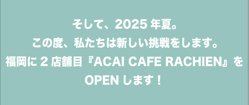 とにかくラチエンの美味しいアサイーメニューに絞ったお店にしよう。まずは福岡でラチエンを知ってもらい、ラチエンのアサイーの美味しさを認めてもらえるように、アサイーメニューに力を入れて提供していきます。