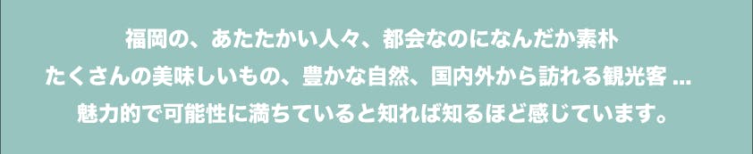 福岡の第一印象は『本当に活気のある街で可能性に溢れている!』そんな印象。