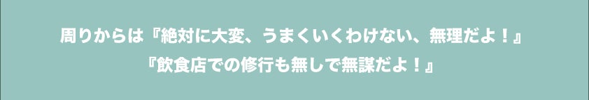 周りからは『絶対に大変、うまくいくわけない、無理だよ!』『飲食店での修行も無しで無謀だよ!』とたくさん言われました。