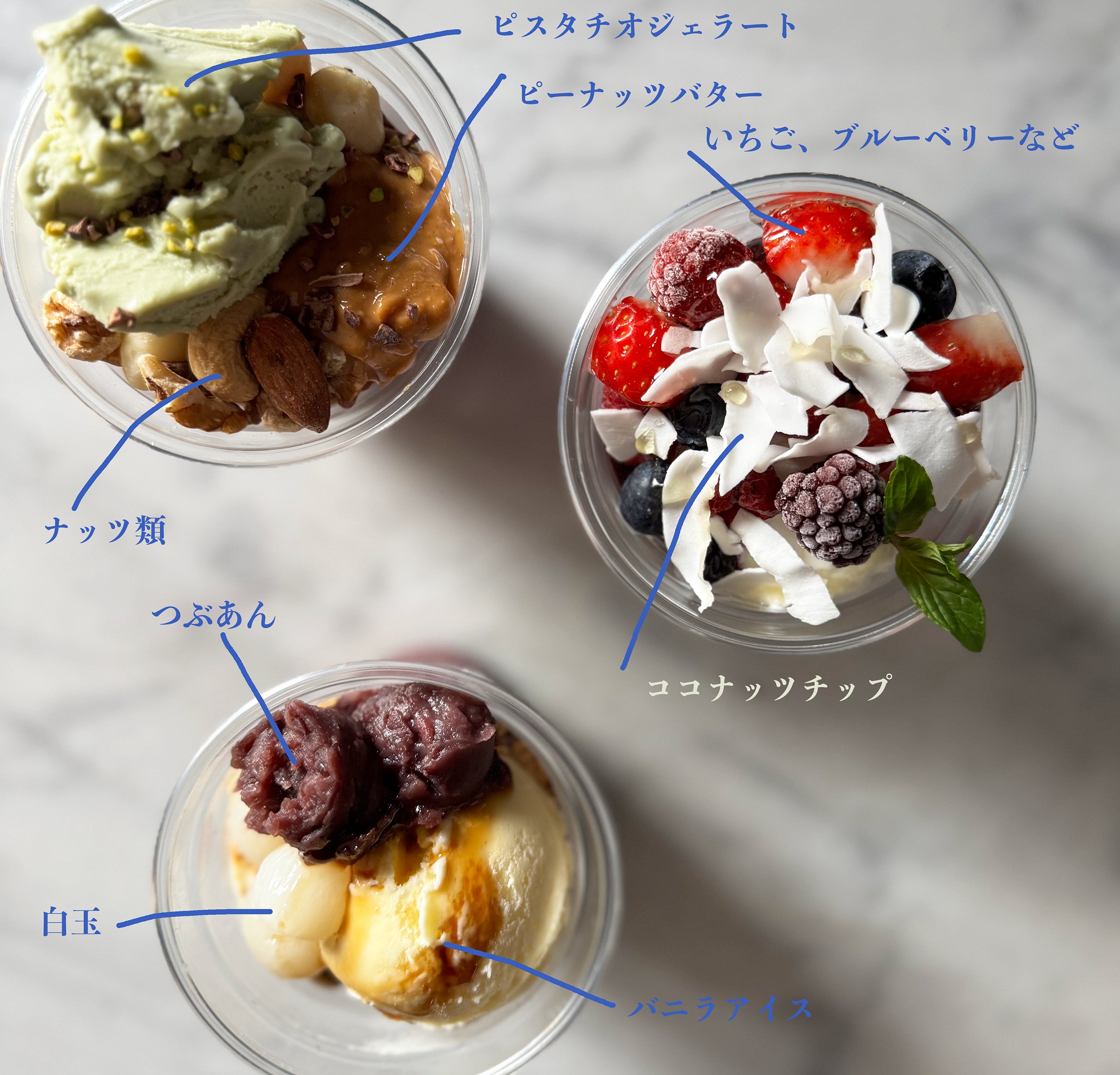 アサイーのスムージーも種類豊富にご提供2)和風アサイーボウルのメニューの充実