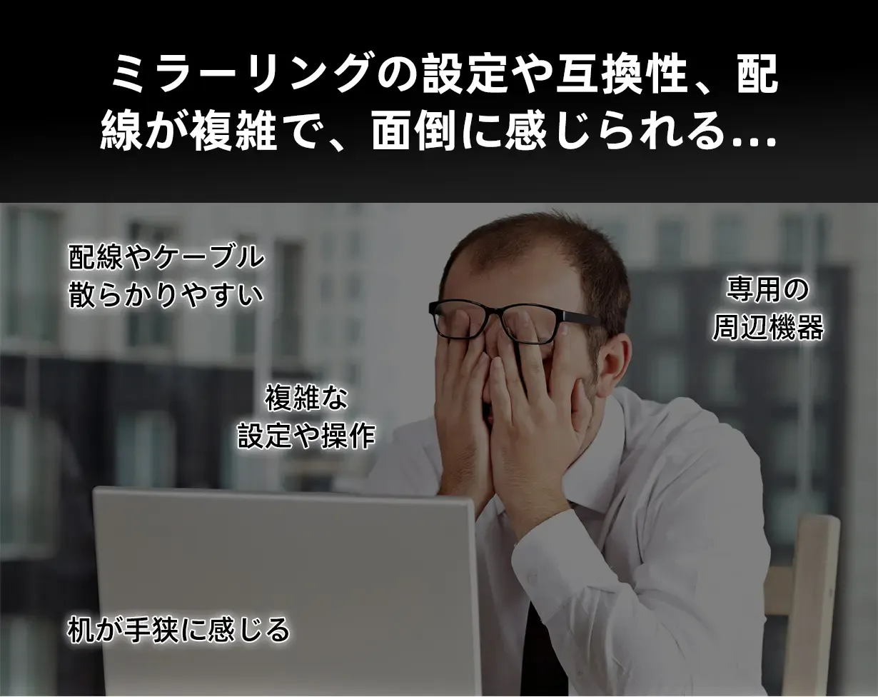 ケーブル不要で機器をつなぐことなく投影可能。デスク周りも画面周りもスッキリ快適です。