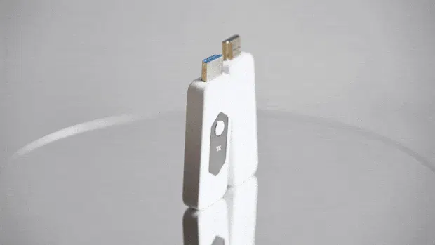 ワイヤレスミラーリングアダプターDT-Eは本格的な1080P/60Hzストリーミングに対応しながら、このサイズ感!