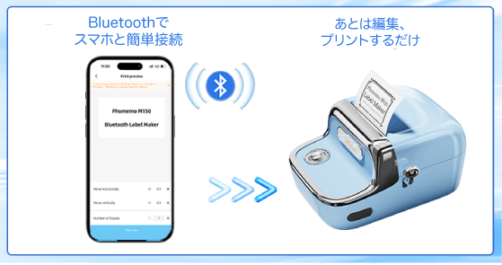 プリンターの設定と操作はスマホとBluetoothで接続するだけ。