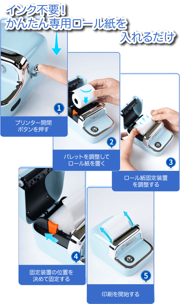 インク不要のサーマル印刷で経済的&エコ設計!専用ラベルロール紙を入れるだけで印刷OK。面倒なインク交換も不要!