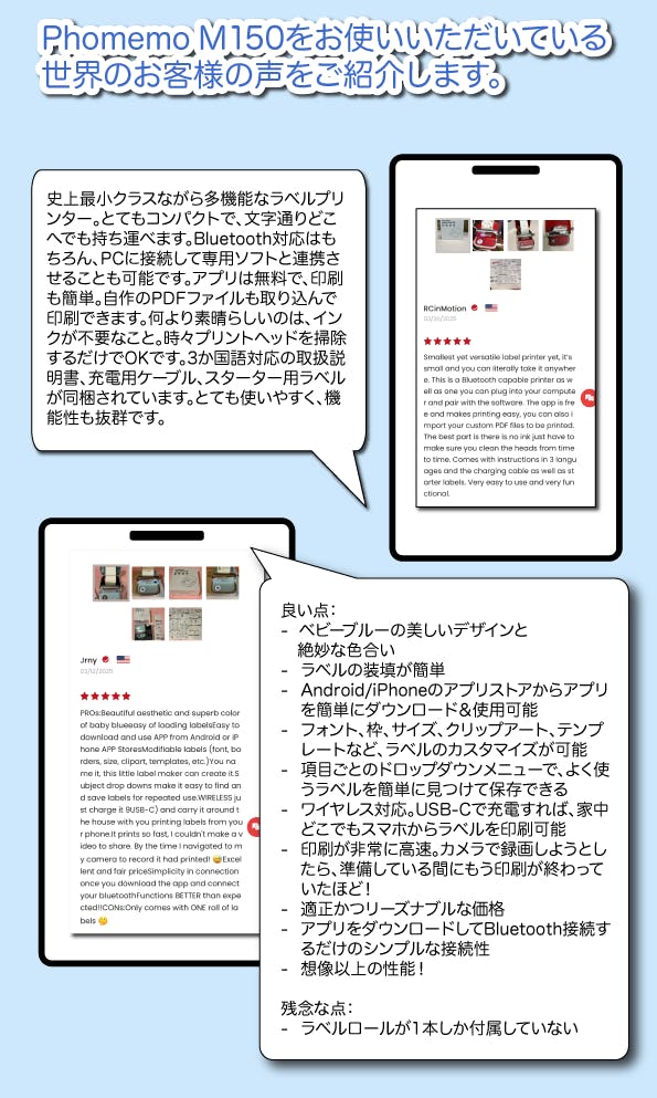 はPhomemoのスローガンです。 Phomemo M150は「もっと手軽にラベルプリントしたい!」という単純な考えから始まりました。
