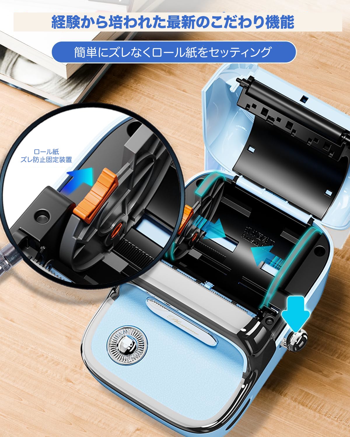 インク不要のサーマル印刷で経済的&エコ設計!専用ラベルロール紙を入れるだけで印刷OK。面倒なインク交換も不要!