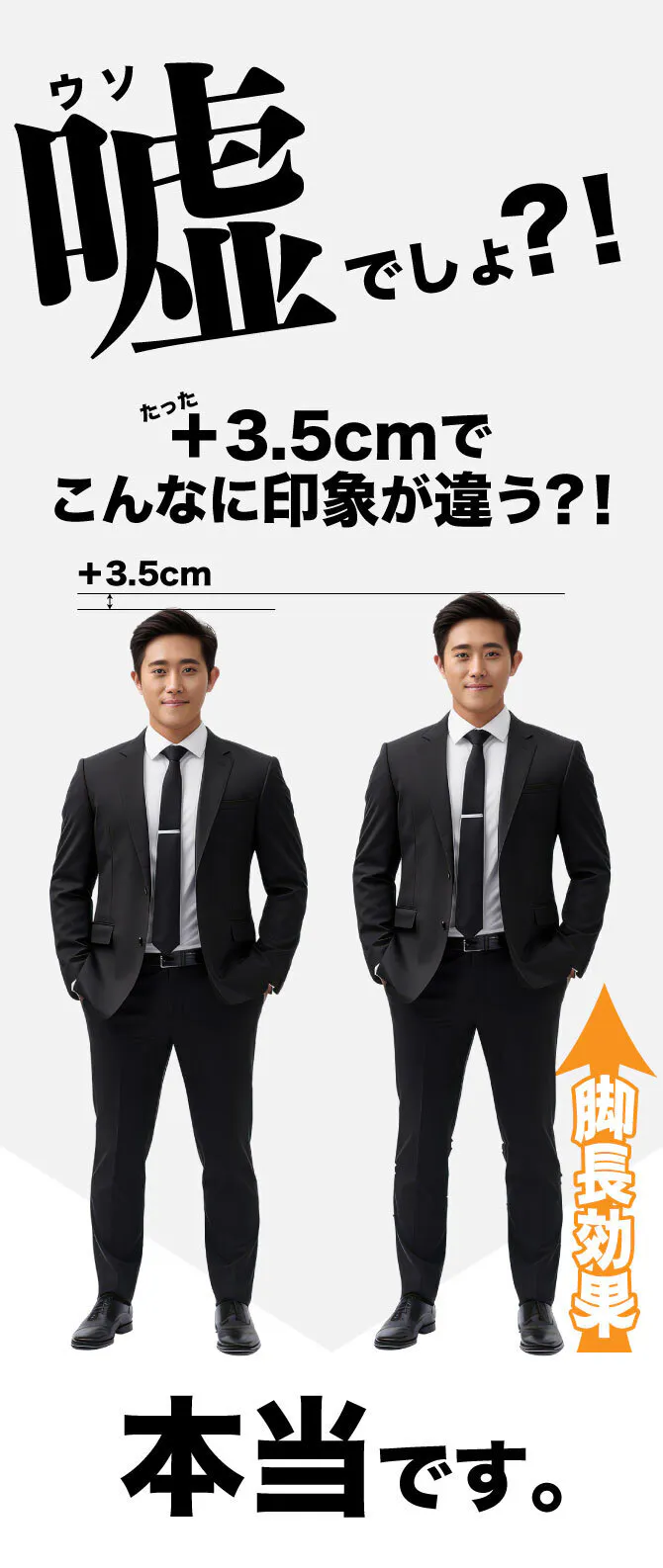 インソールは+2.5cm、+3.5cmの2種類からお選びいただけます。