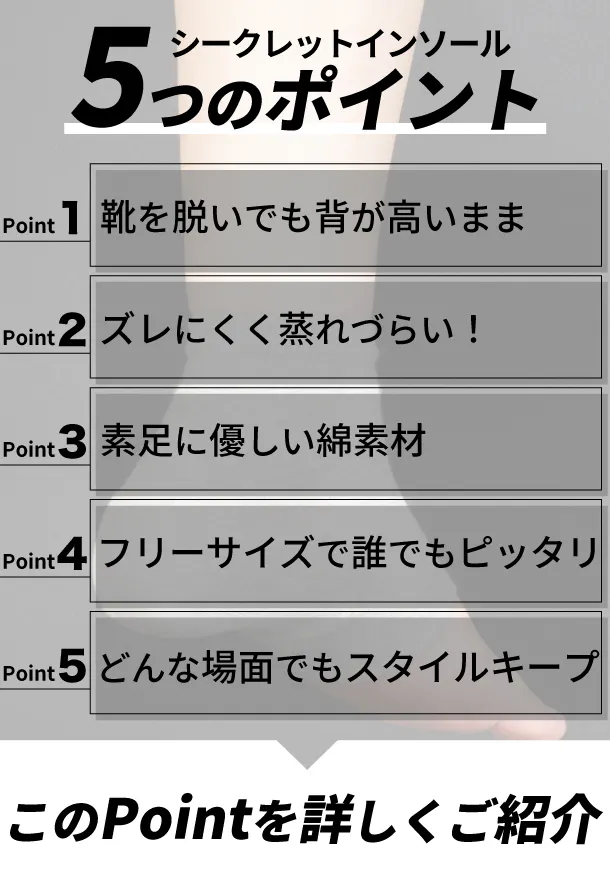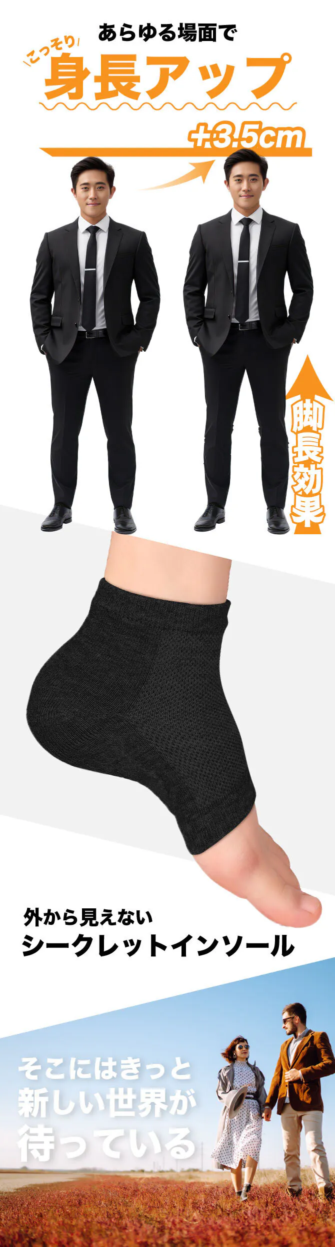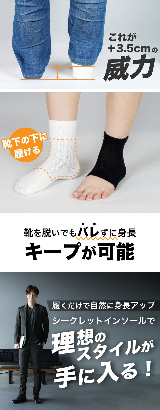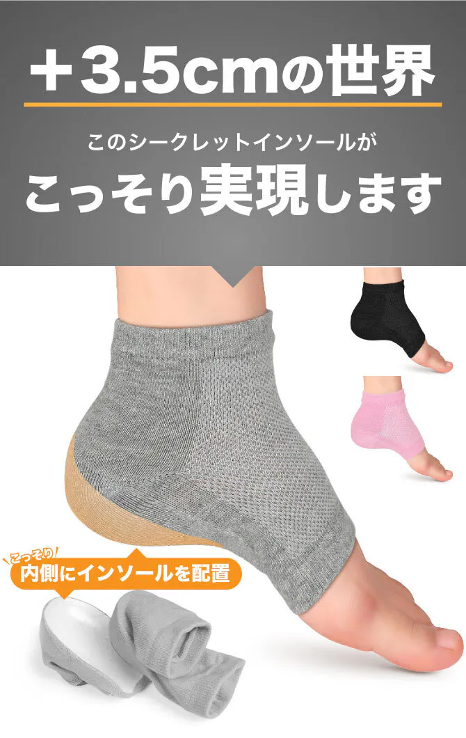 靴下の中に履くタイプのシークレットインソールなので、外から見えずにこっそり身長アップ!