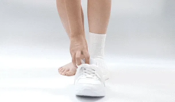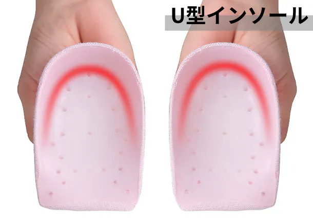 A : 柔らかい素材で踵を包み込むU型のインソールを採用し、サポーターにより踵と一体化するように設計されていますので、踵の大きさに合わせて包み込んでくれ、人それぞれ違う踵の大きさや形に密着されるようになっています。