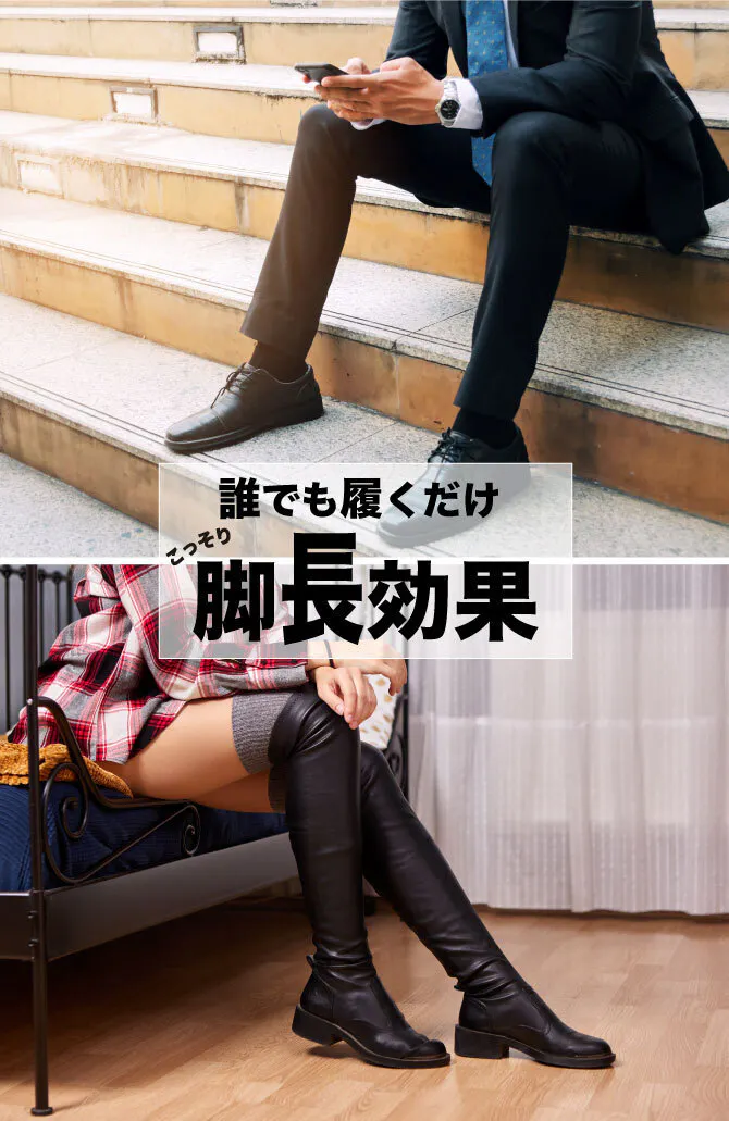 底の厚い靴に抵抗のある方やハイヒールが苦手な女性でも履くだけで足長効果が期待できます。