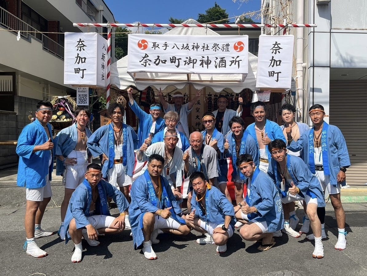 私たちは、茨城県取手市の八坂神社例大祭において御神輿を担ぐ若衆「奈加若連」です。