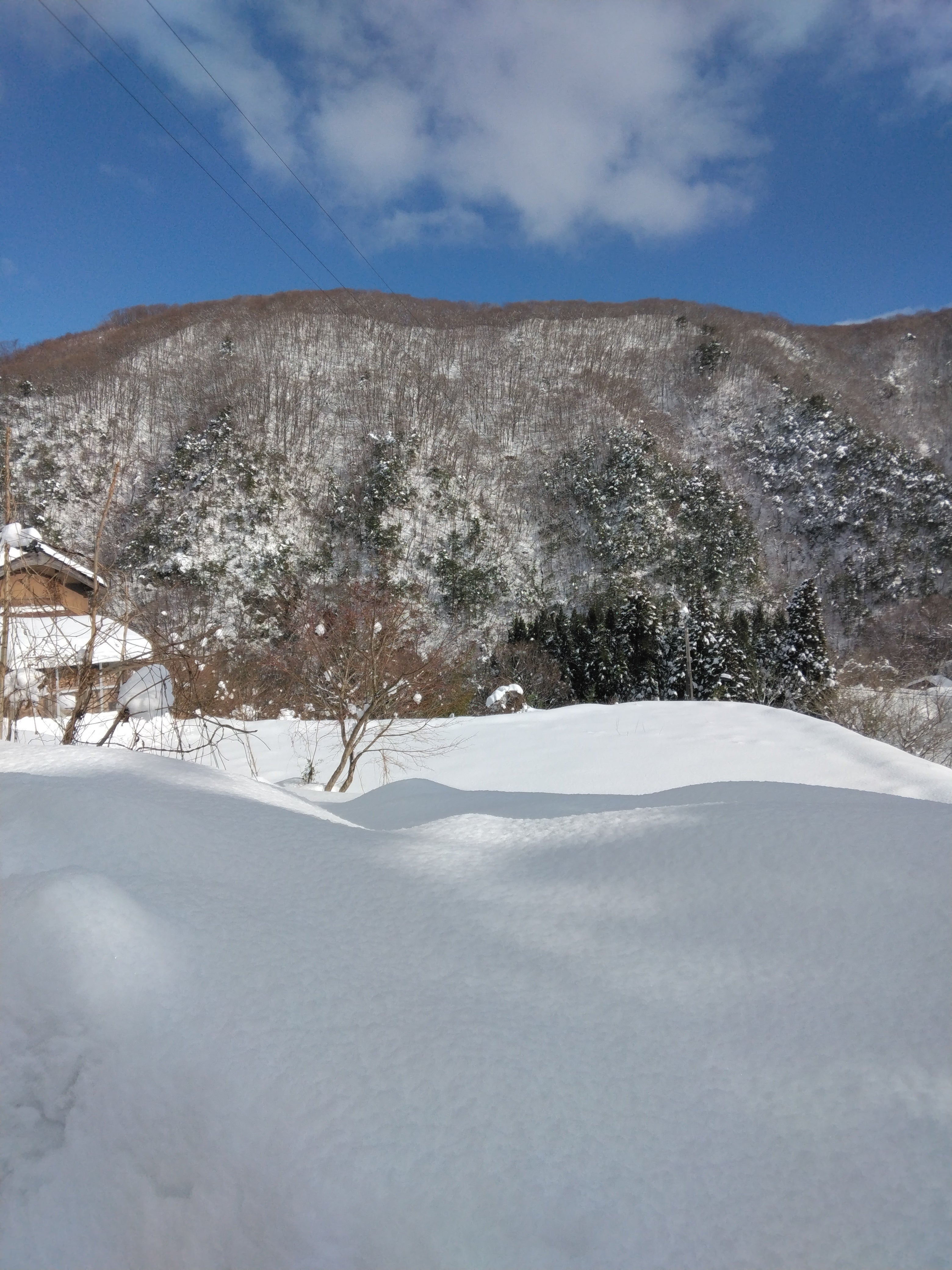 私が暮らす集落は、冬は大変雪深く、今年は30数年ぶりともいう記録的な大雪が降り、例年よりも積雪量の多い年でした。全国的に見られる、お年寄りが多く住む限界集落でもあり、この集落で生活を営む世帯は10世帯ほどです。野原や田んぼが沢山あるそんな自然豊かな環境のなかで、2人の子どもを育てながら暮らしています。