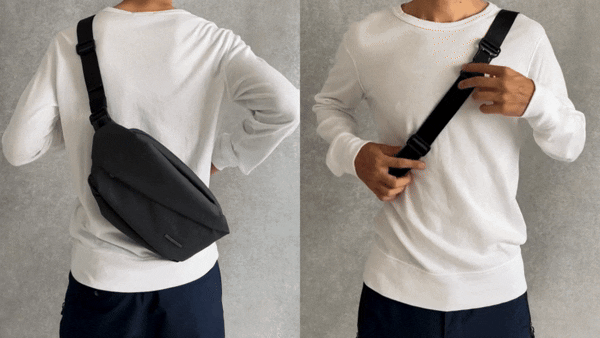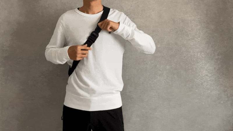 ショルダーバッグにはないフィット感で自由に動き回れるように、ダブルストラップバンドを採用しました。