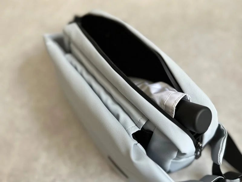 長さが26cm以内のコンパクトな傘ですと、メインポケットもしくはドリンクポケットに入れて持ち歩くことができます。