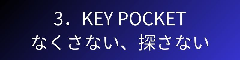 すぐにどこかに隠れてしまう家鍵、車鍵、キーケースやアクセサリーはファスナ―付きのキーポケットに。