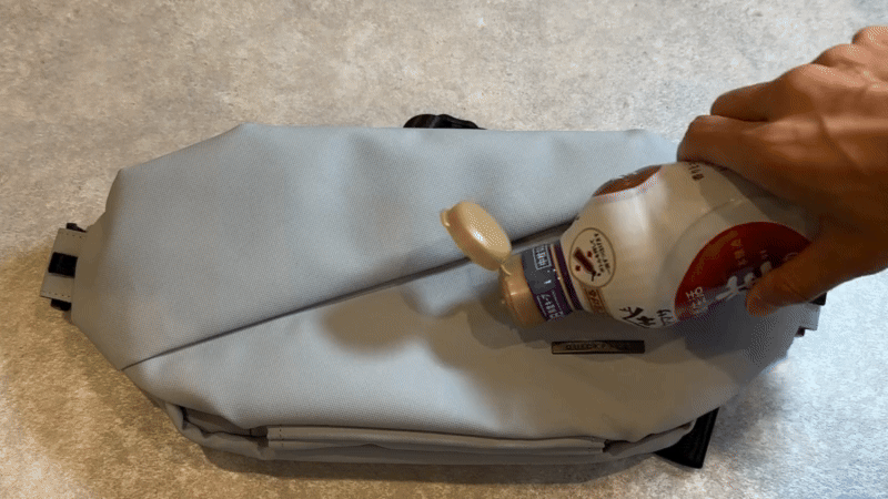 出入口には落下防止カバーでドリンクを入れたまま背負っても落ちません。