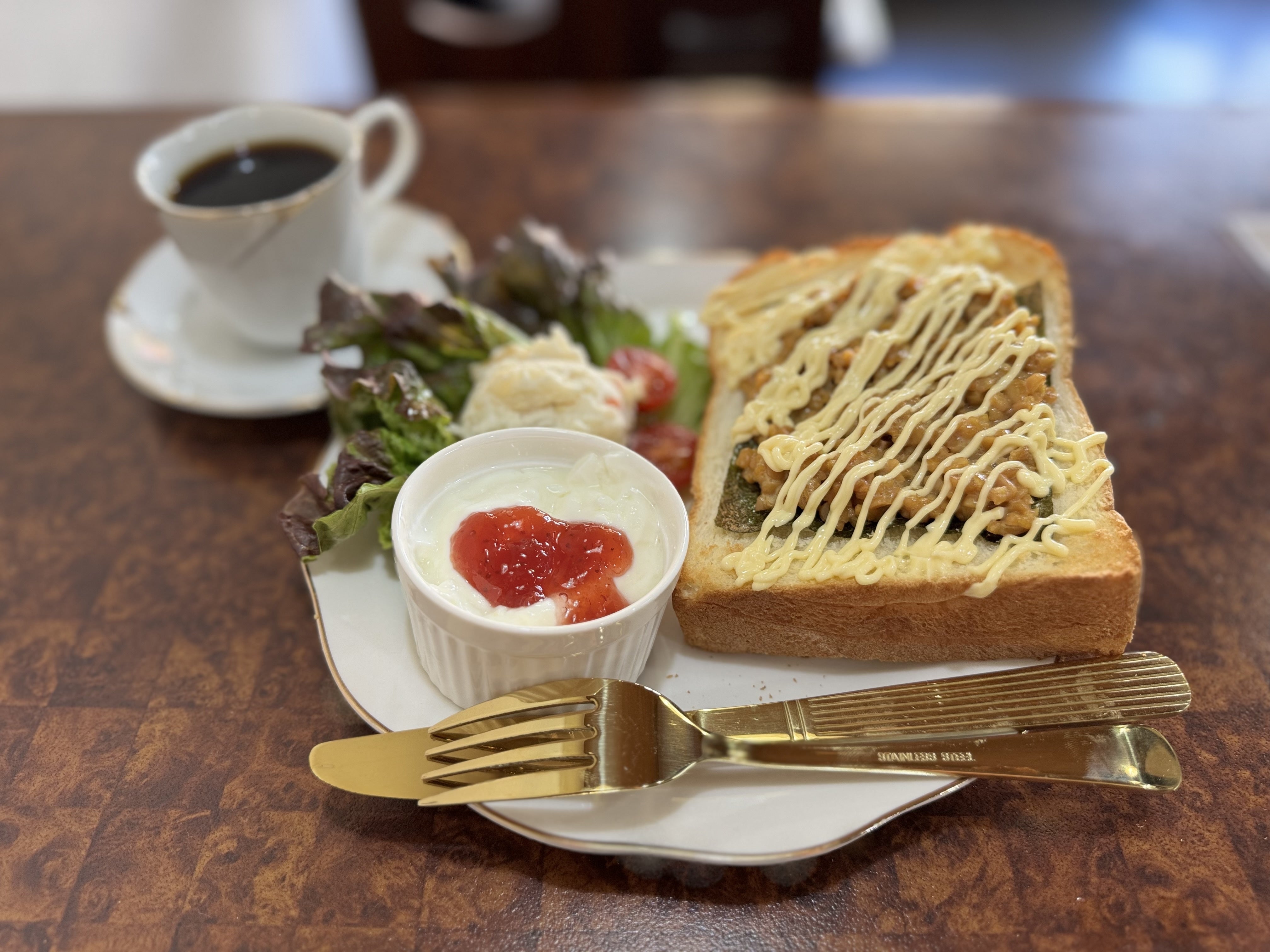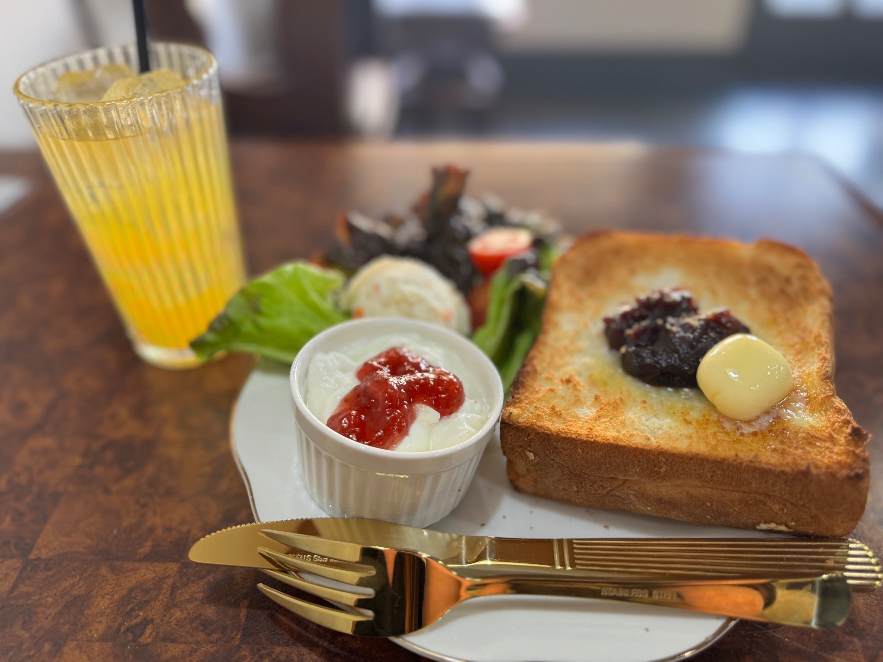 現在AM10:00ー13:00まではモーニングとして、¥600‐ で、選べるトーストセットにワンドリンクも付けて提供しています。