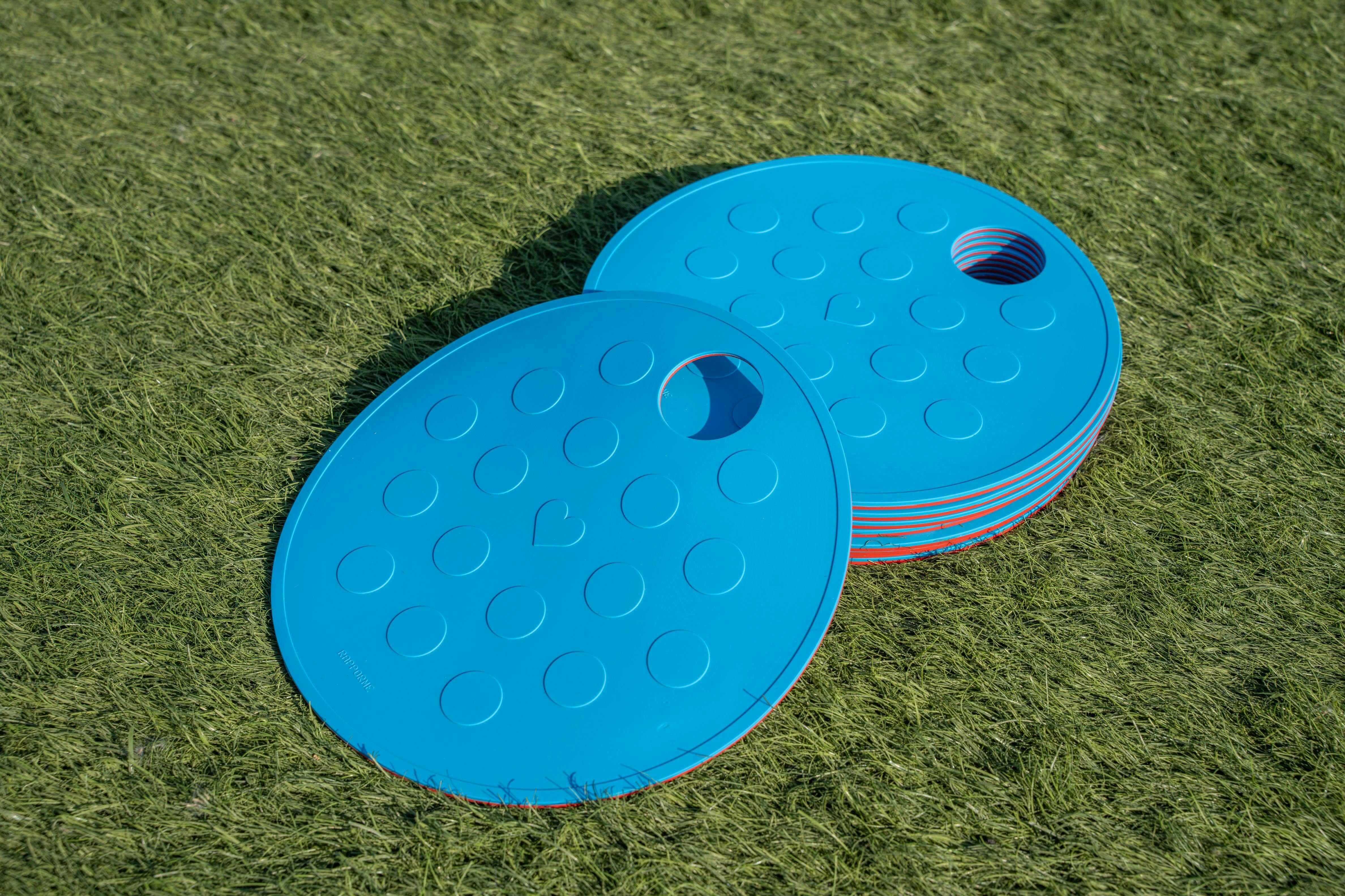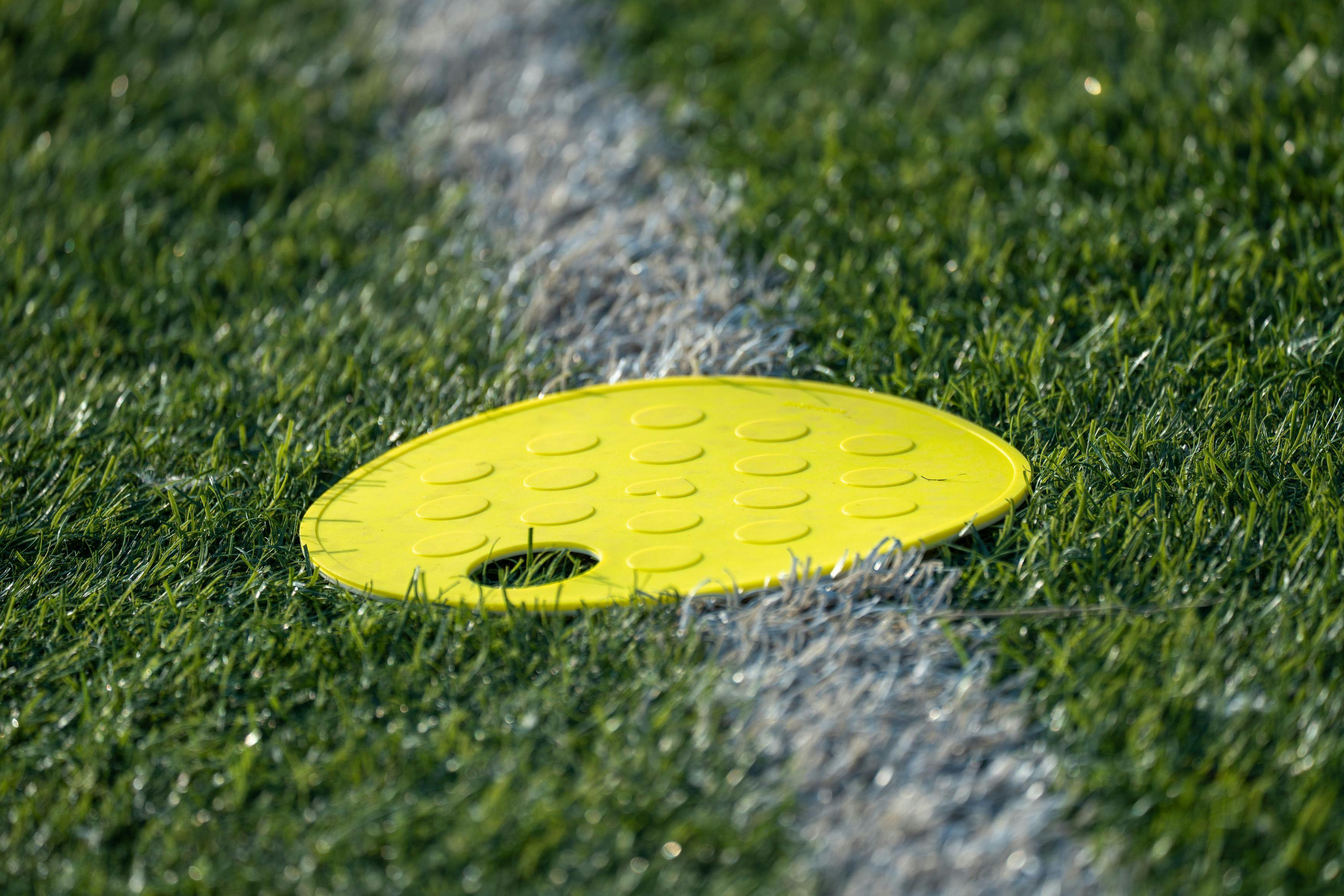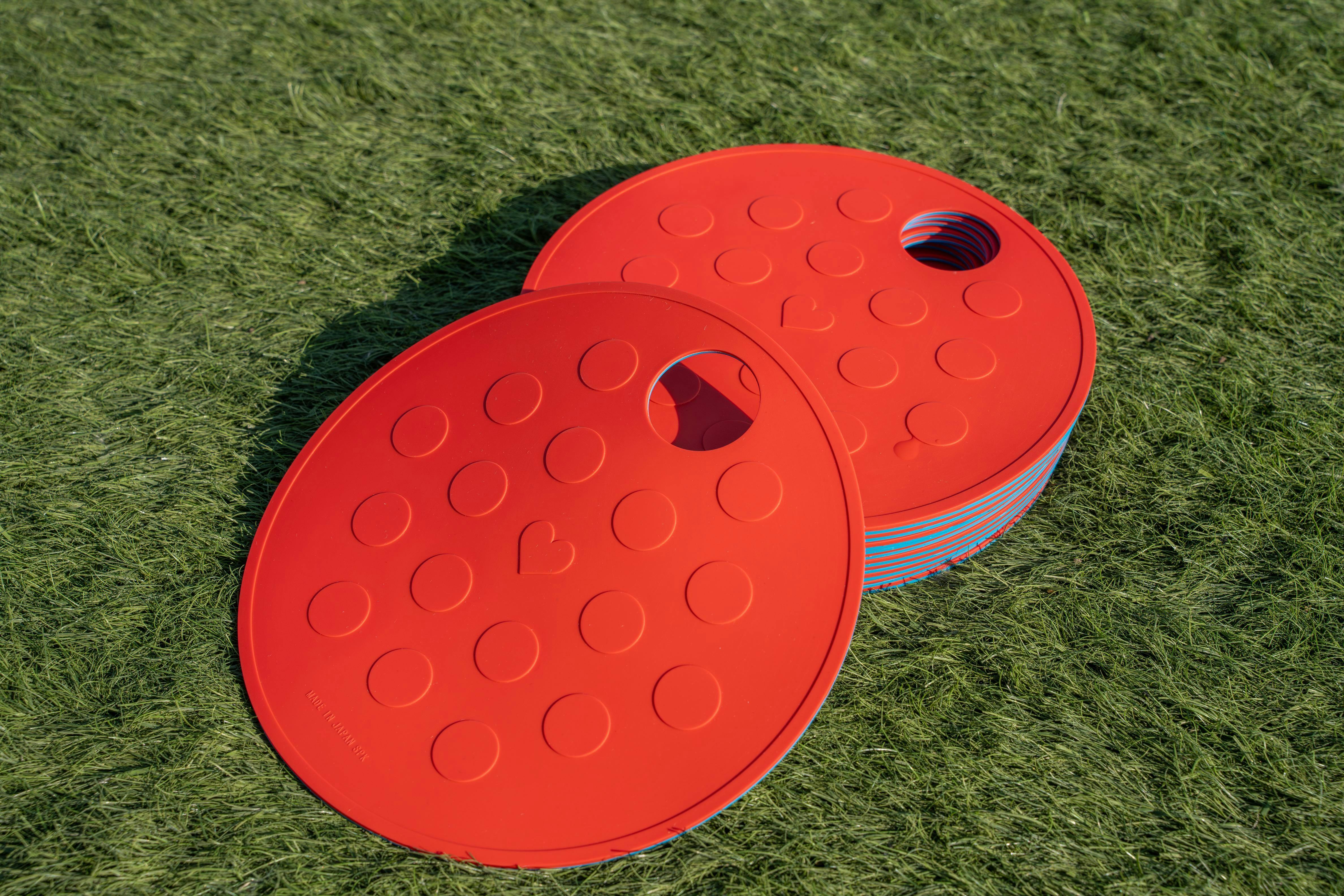 平面タイプのフラットマーカーなので、従来のものと同じく足元の邪魔にならずプレイヤーやボールの動きがスムーズです。