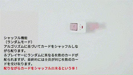 操作方法: 1ボタンでシャッフル→配布が完了。使い方もシンプルです。