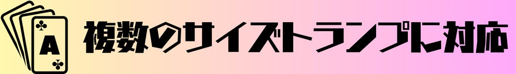 A: 標準的なトランプカードに対応しています。特殊なカードにも使用可能です。横57mm縦96mmまで柔軟に対応してます。