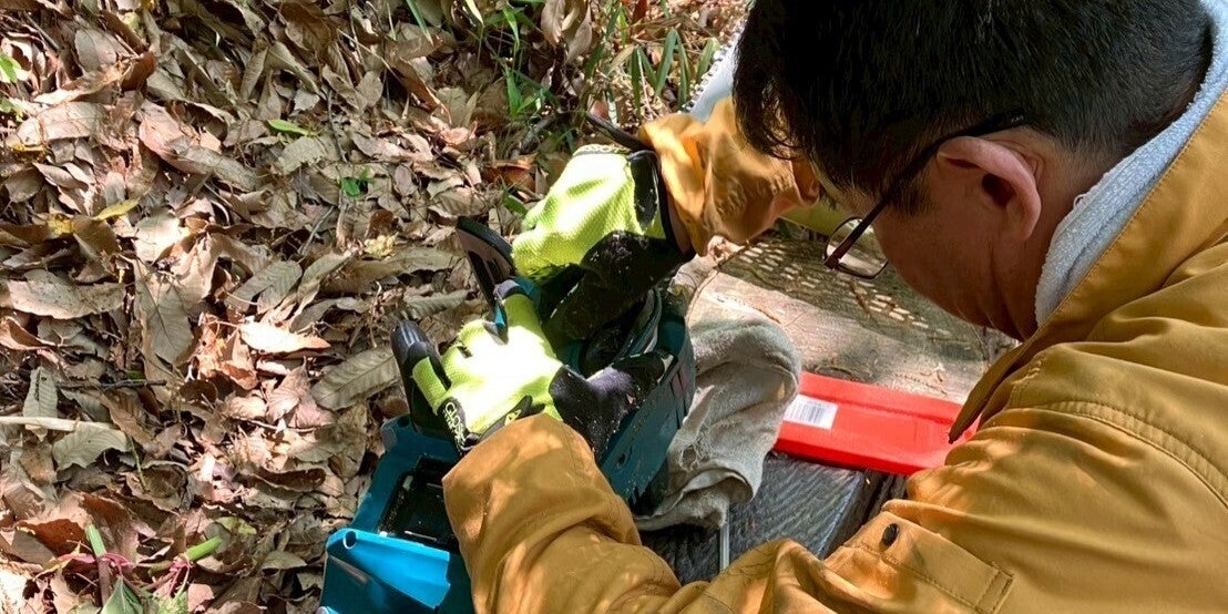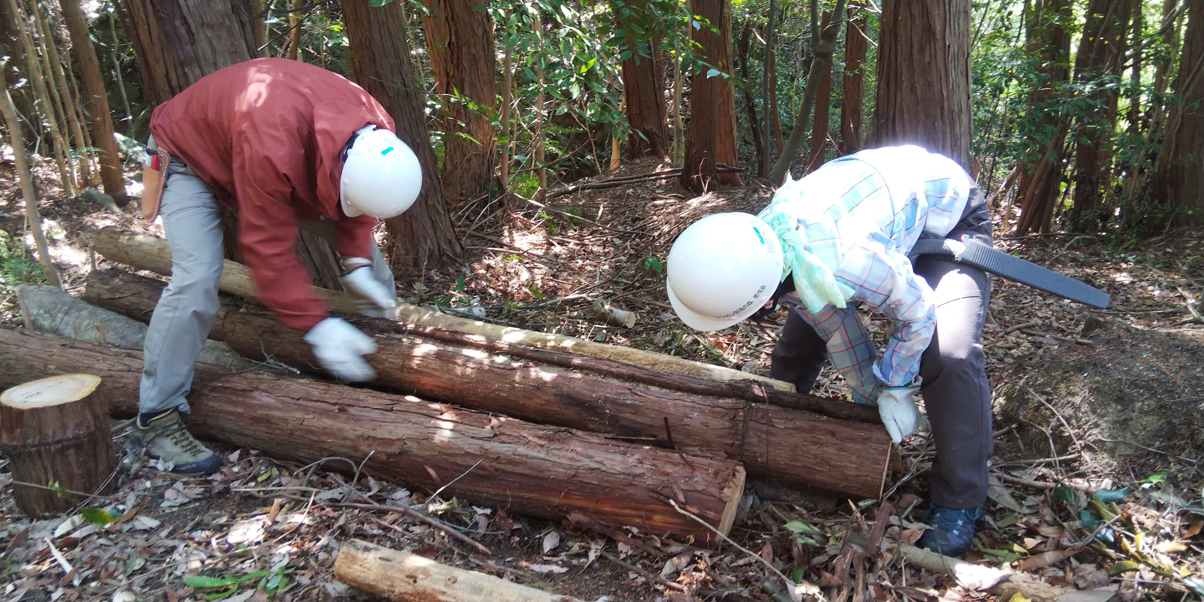 その際に使う馬具(ドッコイ)が引っかからないように切り株を小さくしたり、40人ほどの人が安全に風ちゃんの様子を見学できるように邪魔になる木を伐採したり。
