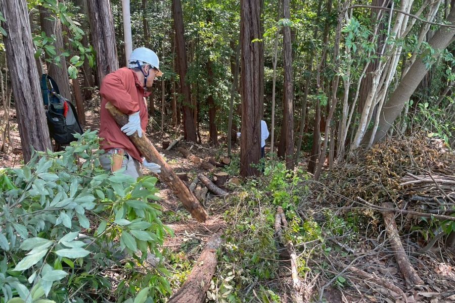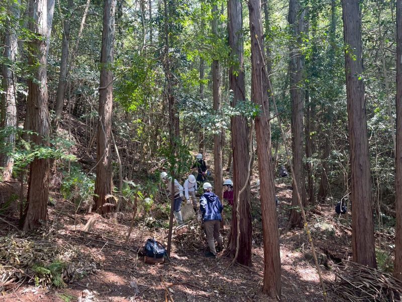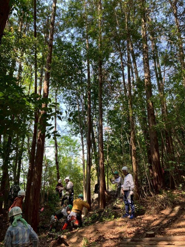 各班、着々と仕事をこなし、最後は全員で、イベント会場となるヒノキ林の整備に取り掛かりました。